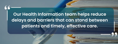 Our Health Information team’s meticulous work directly influences our ability to provide streamlined, personalized support. They help reduce delays and barriers that can stand between patients and timely, effective care.